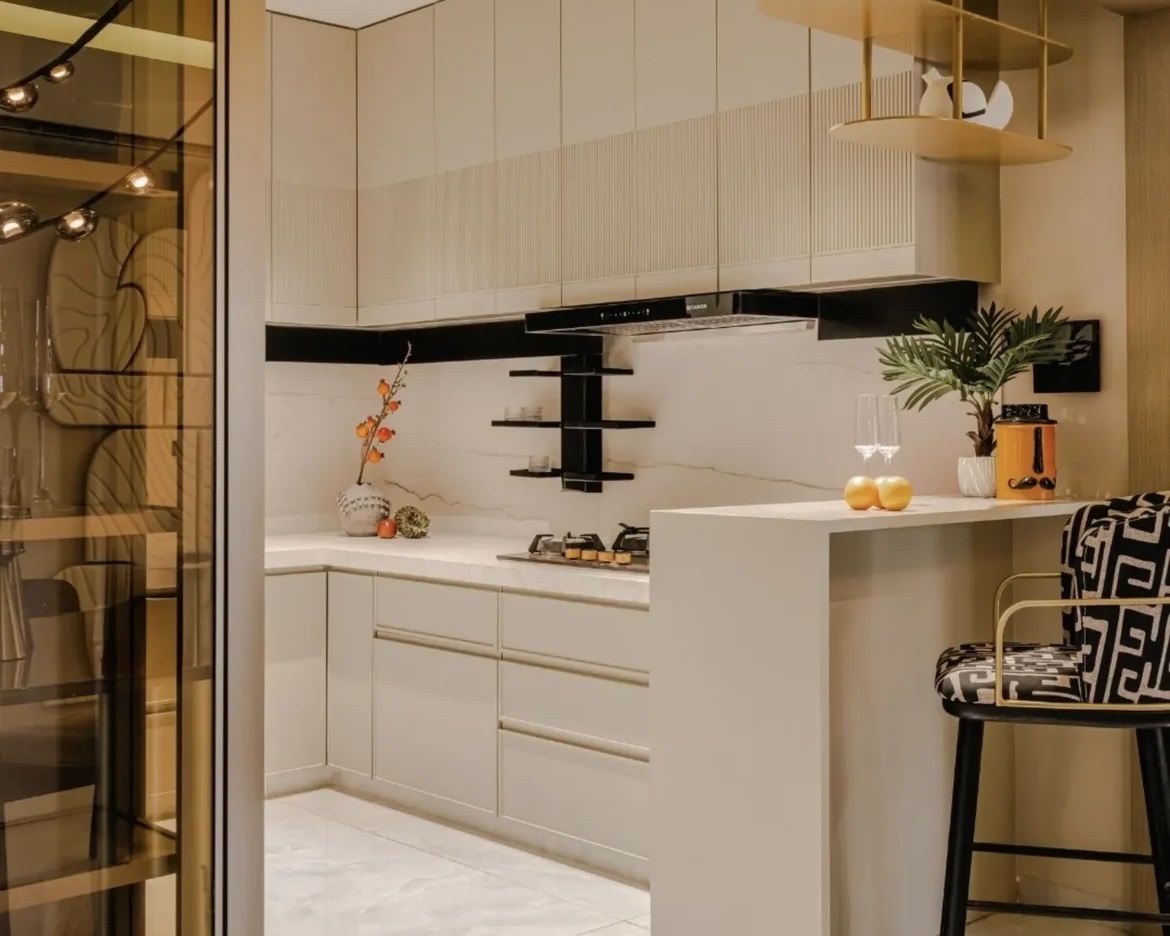 Located at 16th floor , Lodha Belmondo, The Golden Court is a palace-inspired residence that embodies refined luxury through detail, symmetry, and timeless design. Inspired by classical royal aesthetics, the space is enriched with layered gold hues, intricate craftsmanship, and carefully curated finishes.