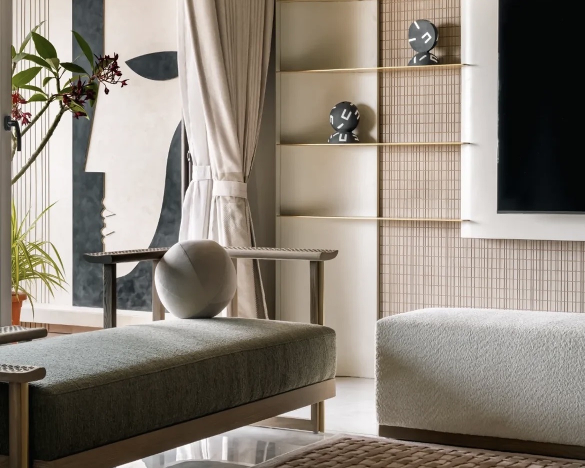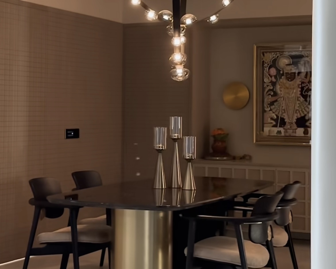 The interiors unfold as a unified experience, where ornamental elements, textured surfaces, and bespoke detailing create a sense of grandeur without excess. Each space flows seamlessly into the next, maintaining a balance between opulence and comfort.
