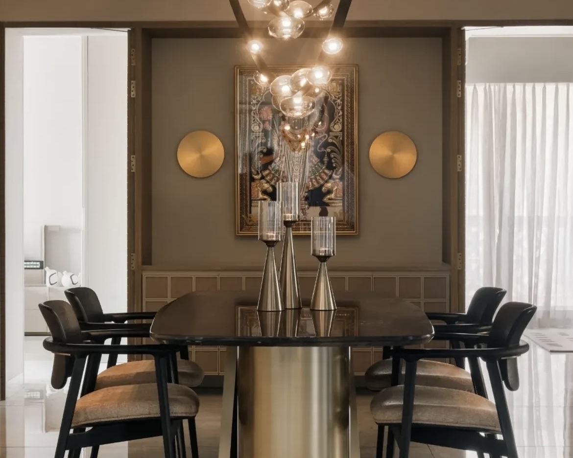 Located at 16th floor , Lodha Belmondo, The Golden Court is a palace-inspired residence that embodies refined luxury through detail, symmetry, and timeless design. Inspired by classical royal aesthetics, the space is enriched with layered gold hues, intricate craftsmanship, and carefully curated finishes.